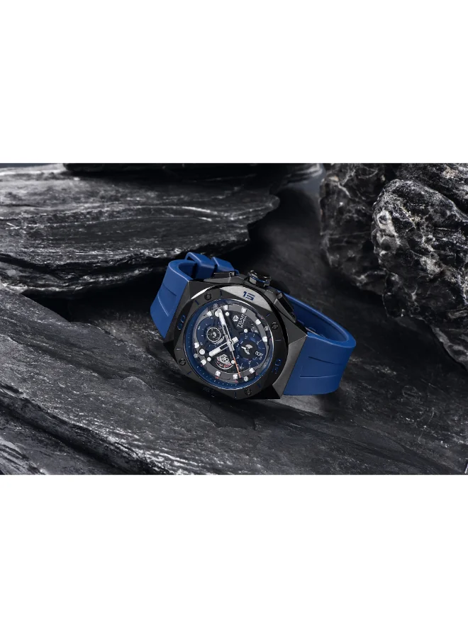 Round 316L Stainless Steel Black case with Analog display, Blue dial 316L Stainless Steelmm case diameter, Citizen Miyota JS15 Movement movement, 10 ATM water resistant Blue Rubber bracelet with 46*52mm